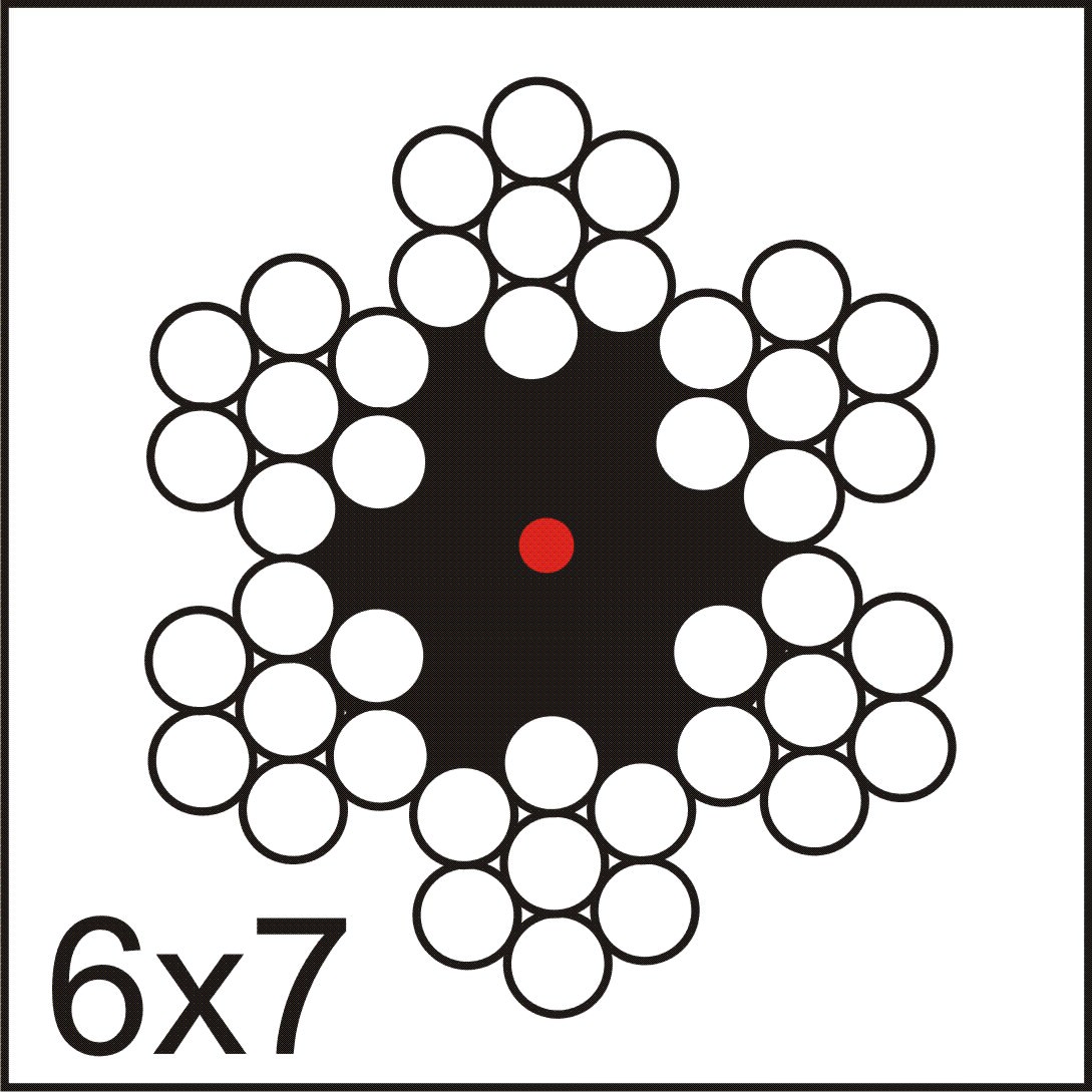 Ao lado a figura representa a secção do cabo de aço que fornecemos, independente da espessura a secção será sempre a mesma.