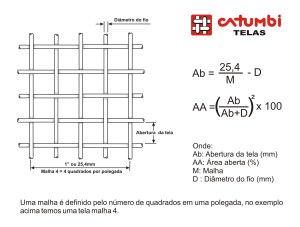 MALHA FIO PESO (kg/m²) ABERTURA (mm) ÁREA ABERTA (%)