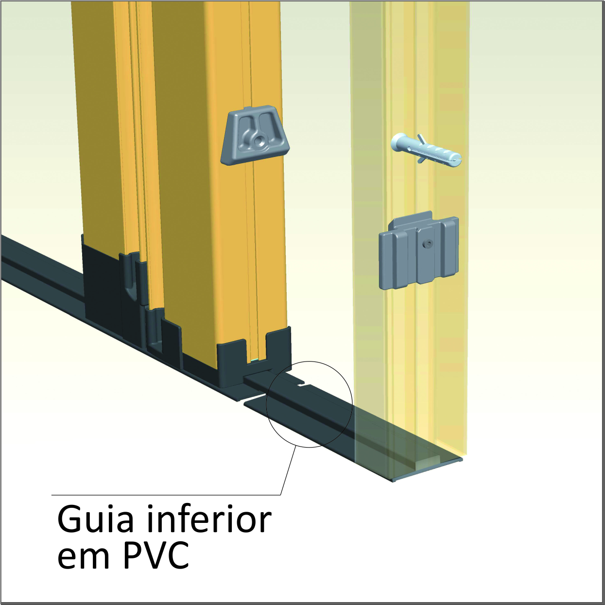 - Sua guia inferior é constituída de um perfil muito baixo, tornando ideal para idosos ou quando há necessidade de passagens frequentes.