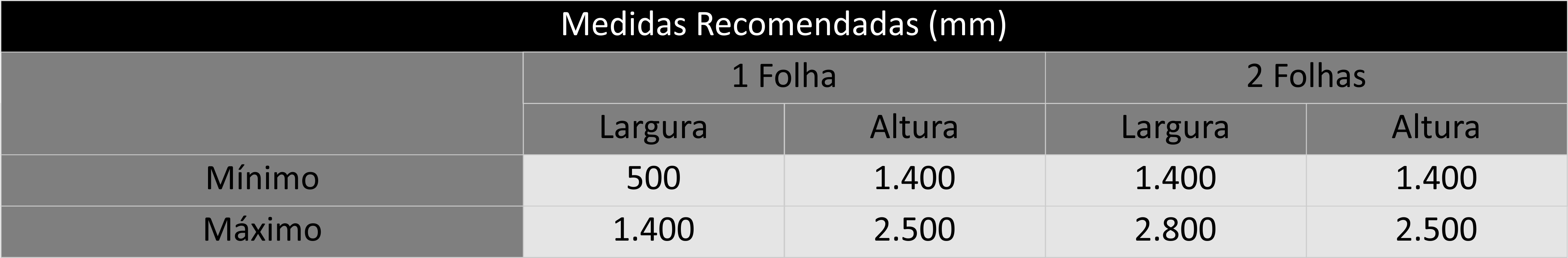 - A montagem pode ser feita com 02 folhas, cobrindo vãos até 2,80m de largura.